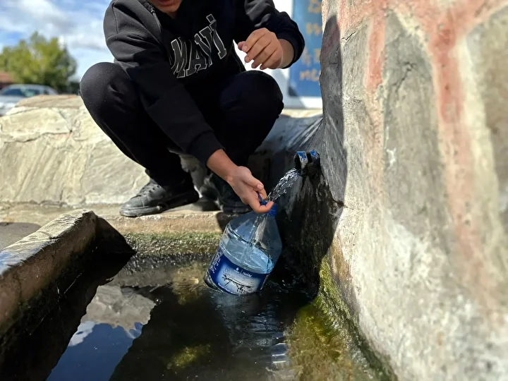 2 gündür su kesintisinin yaşandığı Yıldırım Beyazıt Mahallesi’nde vatandaşlar, çeşme önlerinde sıraya girerek pet şişeler ve bidonları doldurup evlerine taşımaya başladı.